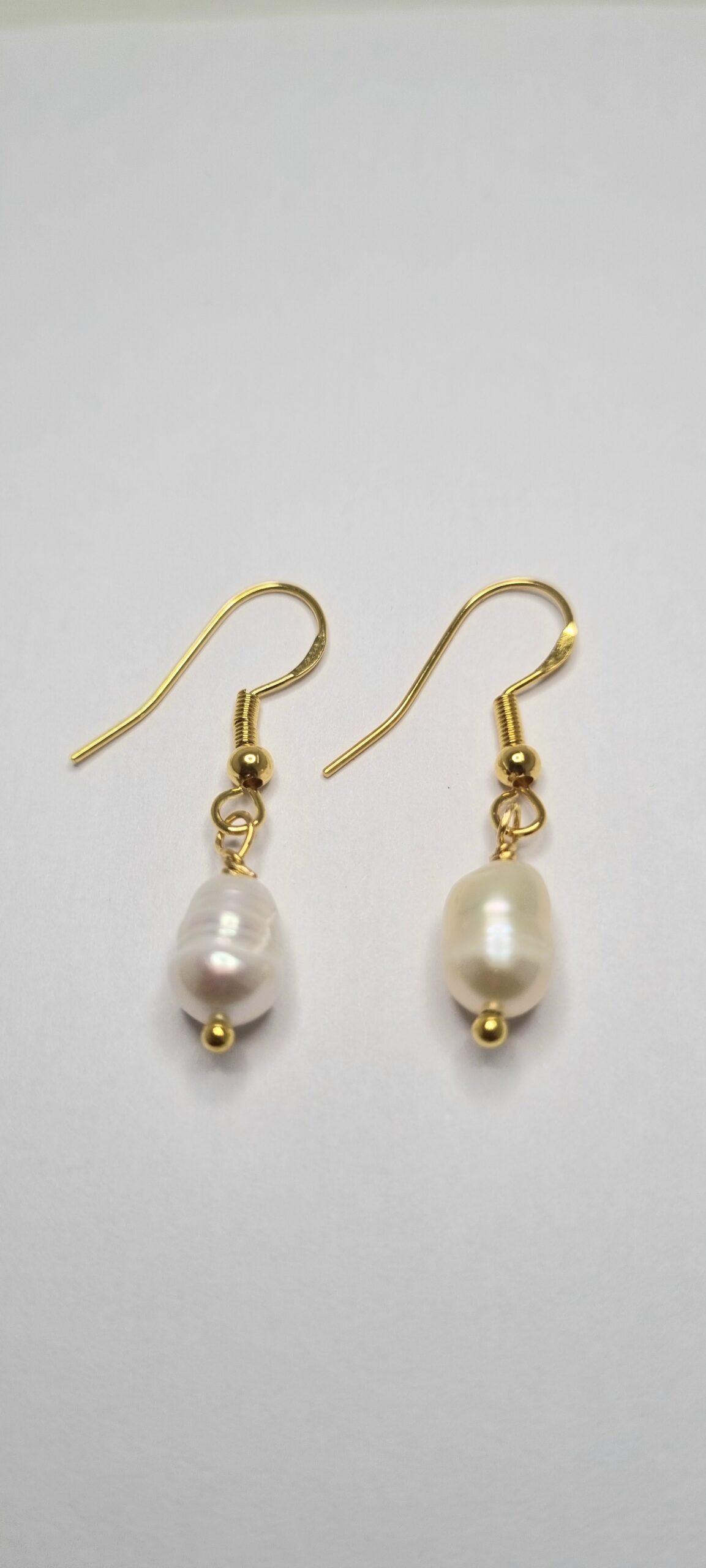 | Pearl Teardrop Gold Earrings, White Freshwater Pearl. |